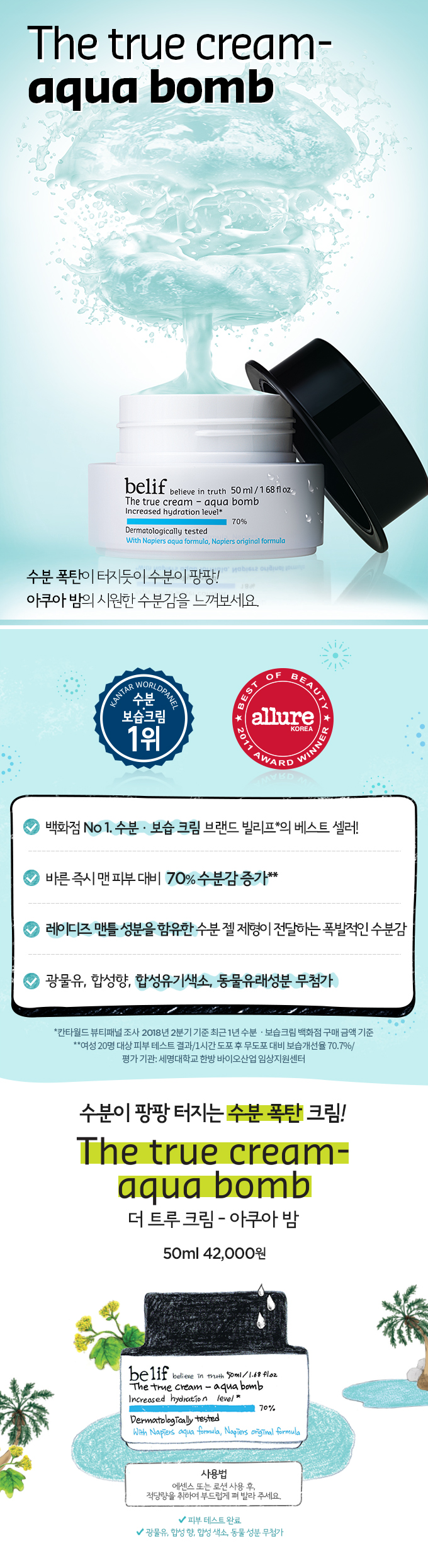 榮獲韓國雜誌Allure美容大獎及韓國美容節目Get it beauty最保濕面霜,有保濕炸彈之稱,以天然草本成份製成,啫喱質地極易吸收,可瞬間令肌膚充滿水份,回復彈性。